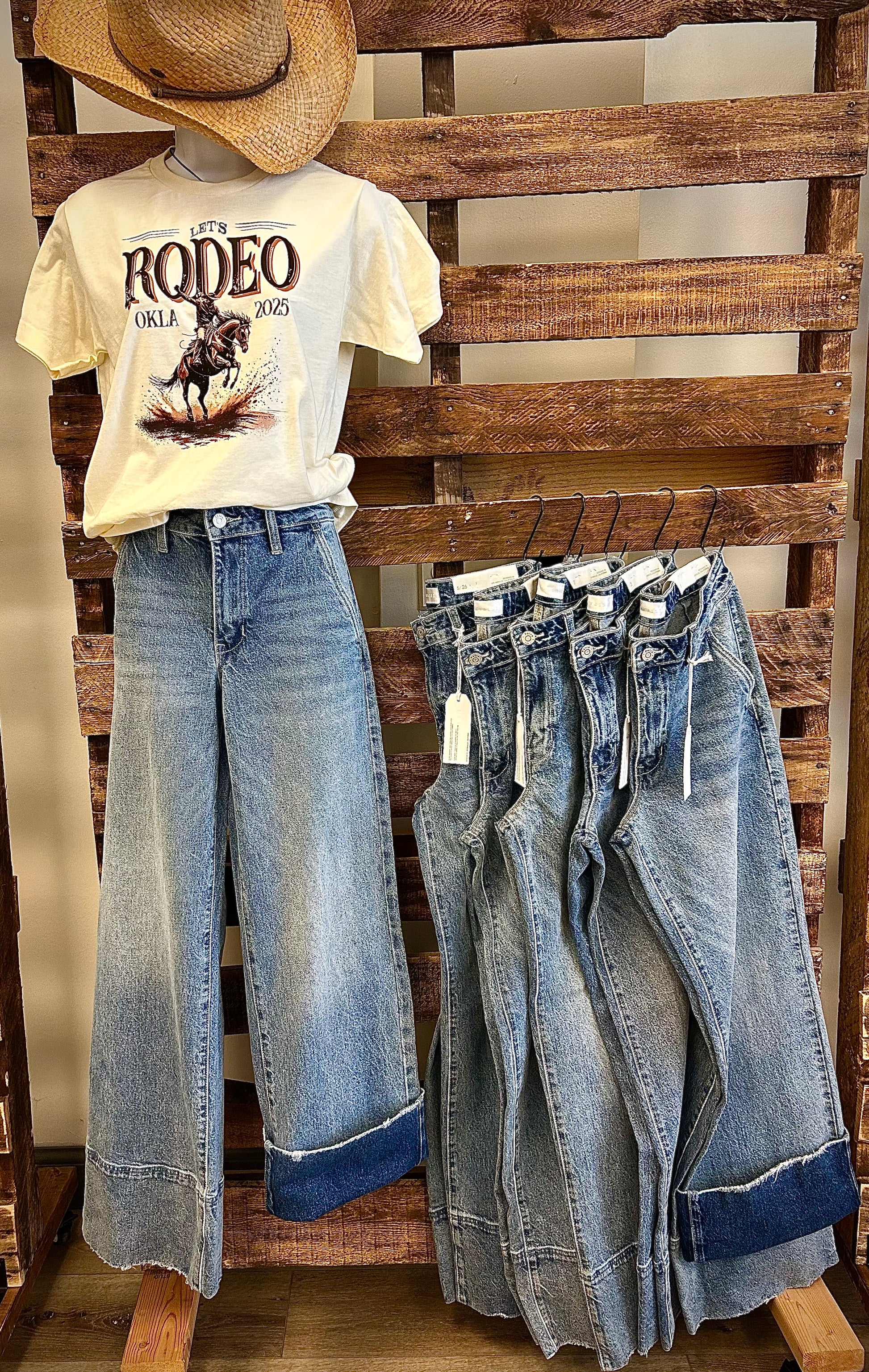 Our Opal Trouser Wide Leg Jeans are a mid rise trouser style jean with a light wash and features a slight comfort stretch fit. Wear them full length or with a cute contrast cuff. They’re the perfect style for that on trend look at work and for everyday. These will quickly become your favorite jeans